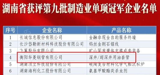 近日,工业和信息化部发文公布第九批制造业单项冠军企业名单,衡钢凭借在“深井/超深井用油套管”细分领域的突出表现成功入选。