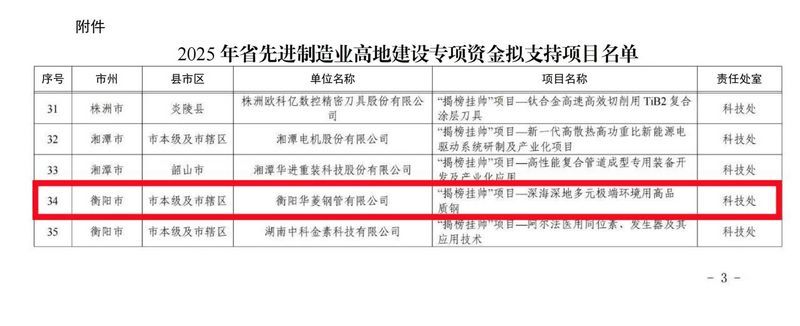 近日,湖南省工业和信息化厅公示2025年先进制造业“揭榜挂帅”项目名单,衡钢“深海深地多元极端环境用高品质钢”项目成功揭榜。