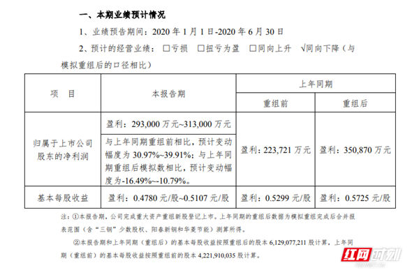 华菱钢铁发布2020年半年度业绩预告,公告称,2020年1月1日-2020年6月30日,公司预计实现归属于上市公司股东的净利润29.30亿元~31.30亿元。