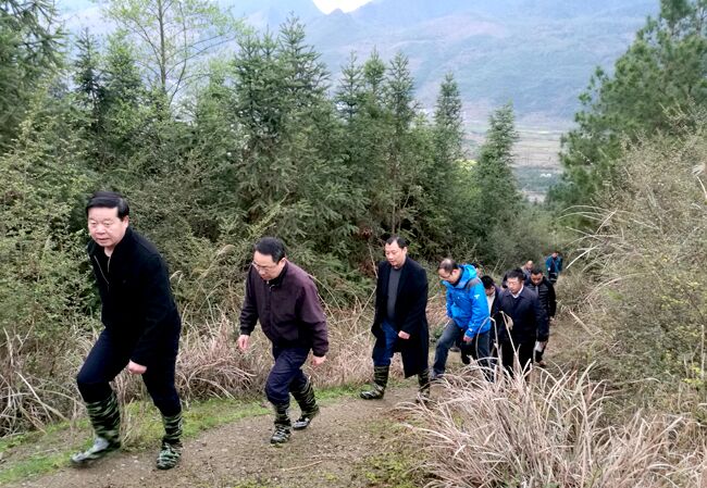 在红光村村支两委主要负责人的引导下,冒着淅淅沥沥的春雨,不顾道路陡峭泥泞,易佐、赵建辉一行对红光村进村主干道、藏香猪养殖场、贫困户房屋,以及规划中的产业道路等进行了实地考察,随后对结对帮扶的3户贫困家庭进行了走访慰问,在送去慰问金与慰问物资的同时,详细了解他们的家庭成员与生活状况。